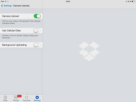 Da er det viktig å være oppmerksom på at bildene dere tar med iPaden kan automatisk bli sendt til Dropbox. Har dere trykket "ok" for det i oppstarten så fortvil ikke, det lar seg skru av.